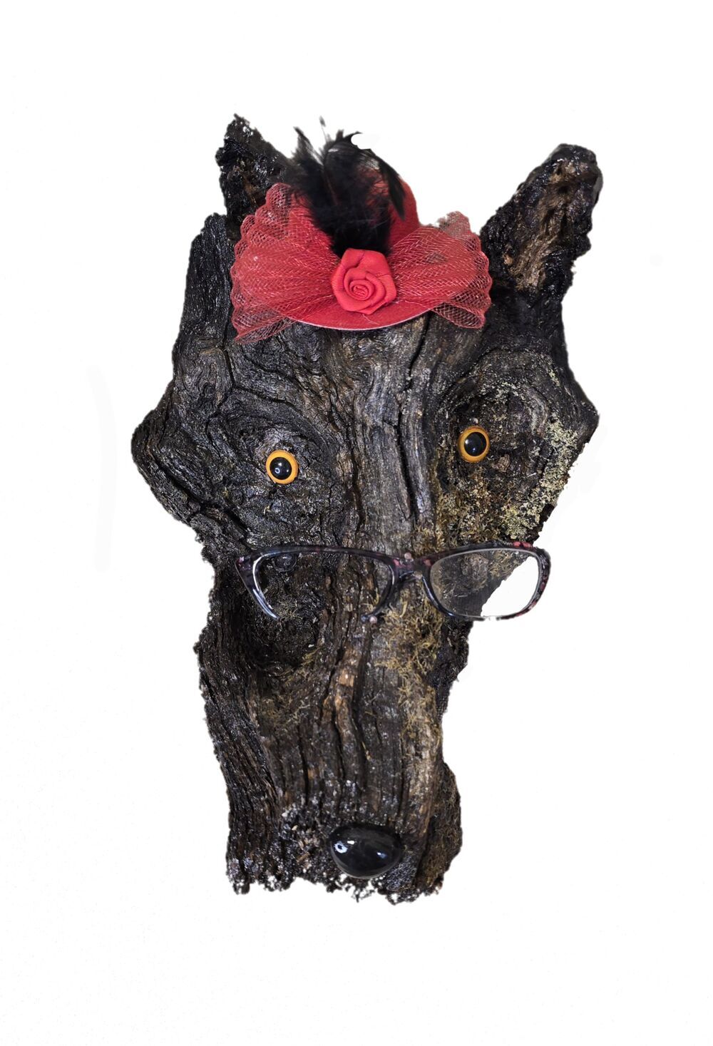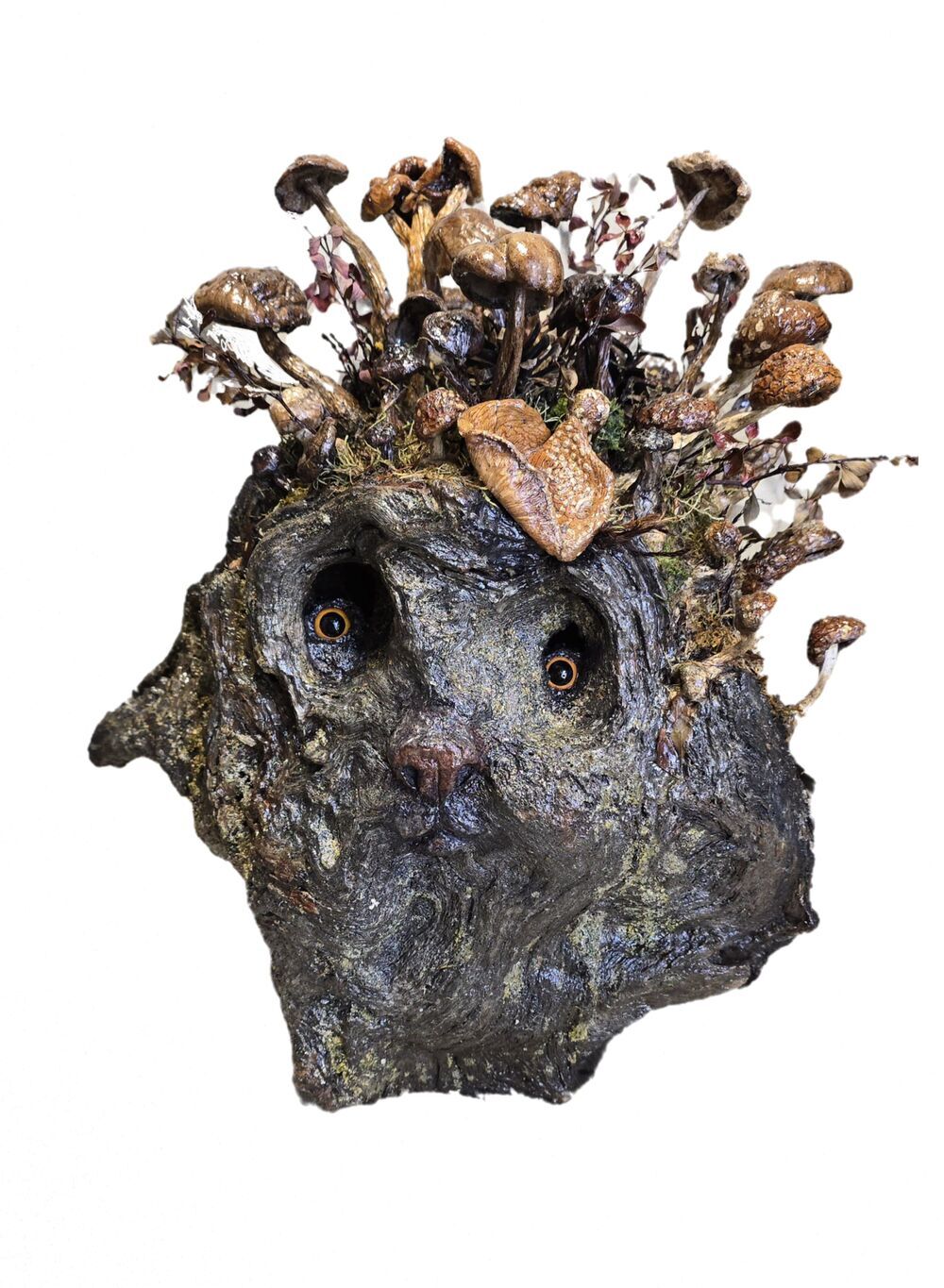Экспонаты сделаны из коряг , коры и природных материалов.
