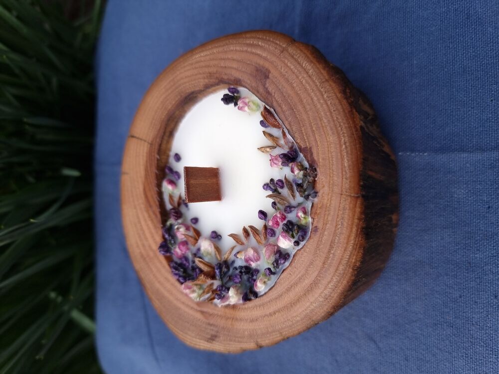 Соевый воск. Подсвечники выполнены из бука, каштана, акации, имеют художественную ценность рисунка шпальтированной древесины, очень тактильные, имеют выразительну фактуру.