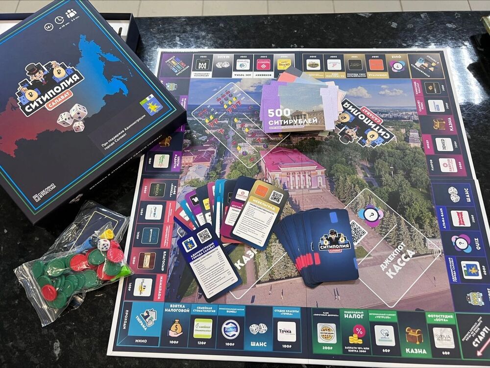 Уникальная финансовая игра, созданная по мотивам всемирно известной игры " Монополия", но полностью адаптированная под город Салават. Наши городские компании, вопросы по истории города и Республики Башкортостан, реальные ситуации из жизни города. Всё делает эту настолку родной и неповторимой!